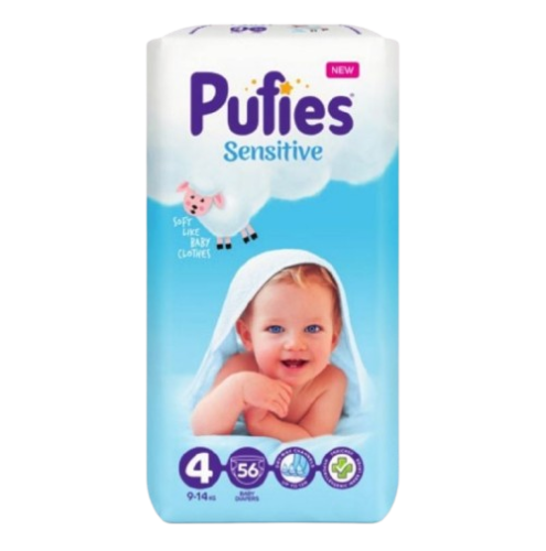 ПУФИС Сенситив Макси Пак Бебешки пелени за еднократна употреба Maxi размер 4, 9-14кг., 56 бр