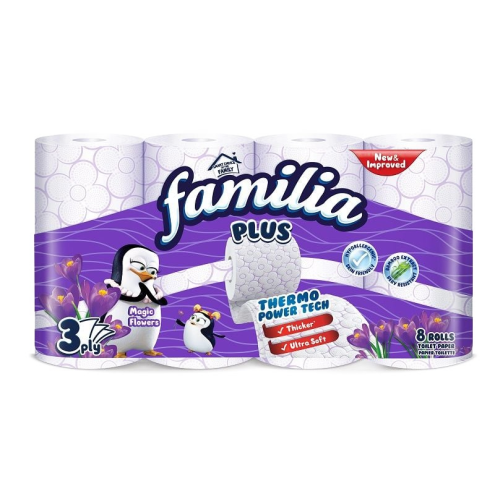 Тоалетна хартия Familia Magic Flowers е трипластова, с изключителна мекота и с приятен аромат, без да дразни кожата.