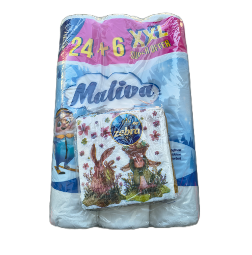 Тоалетна хартия МАЛИВА 24+6 бр