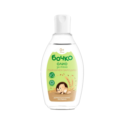 Бебешкото олио за тяло Бочко подхранва и овлажнява кожата благодарение на ценното масло от пшеничен зародиш. Основата от натурални масла от маслина и слънчоглед допълнително хидратира и омекотява. Попива бързо, без да оставя мазни следи. Идеално за употр