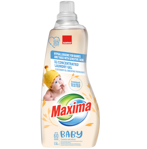 Sano Maxima Baby Hypoallergenict е ултра концентриран омекотител за дрехи, подходящ за употреба при бебета, малки деца и хора с чувствителна кожа. Продуктът съдържа иновативен екстракт от овес, който притежава изключително овлажняващи и успокояващи свойства, предпазващи чуствителната кожа на бебето или детето от дразнене или сърбеж.