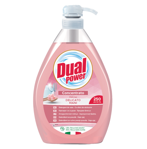Препарат Dual Power Delicato за измиване на домакински съдове с помпа, 1 литър