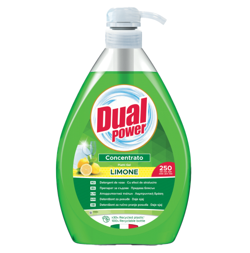 Препарат Dual Power Limone за измиване на домакински съдове с помпа и аромат на лимон, 1 литър