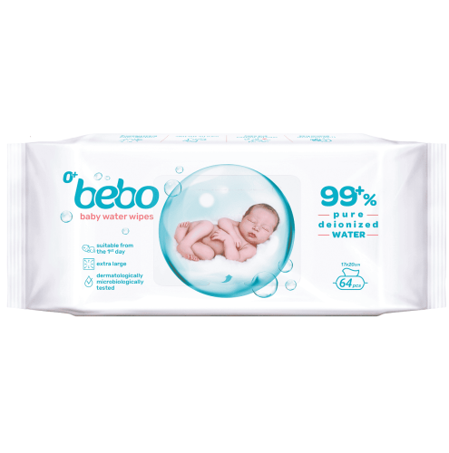 BEBO ПЛЪТНИ ВЛАЖНИ КЪРПИЧКИ ЗА НОВОРОДЕНО 64бр. напоени с 99% вода и капка лимонена киселина.Подходящи за новородени, недоносени бебета, деца и възрастни с чувствителна кожа, както и за домашни любимци. Йонизираната вода осигурява ефект като след измиване с чиста вода без изсушаването и неблагоприятния ефект на твърдата битова вода. Лимонената киселина от цитрус балансира pH на фината кожа.